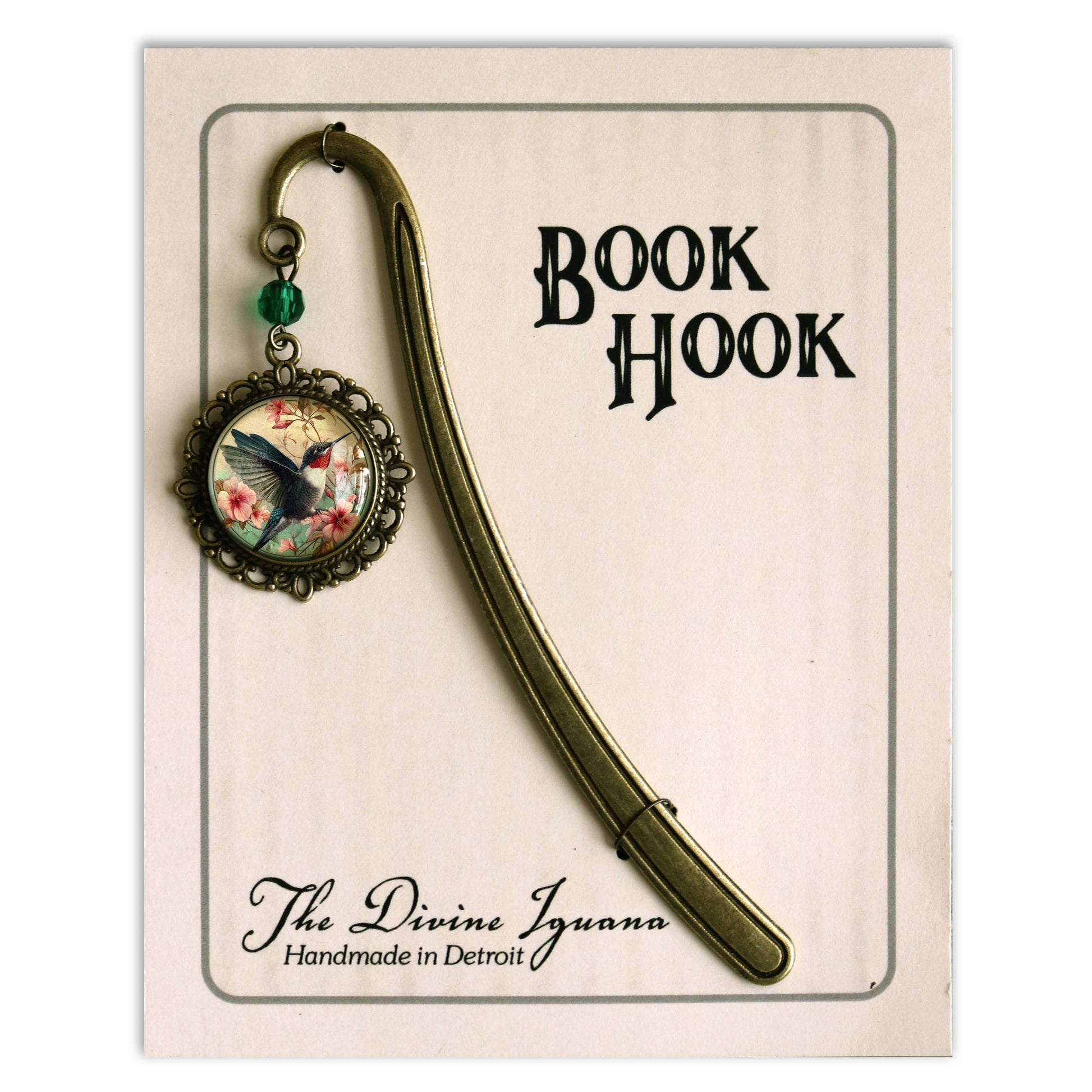 Hummingbird Art Nouveau Glass Cabochon Bronze Bookmark