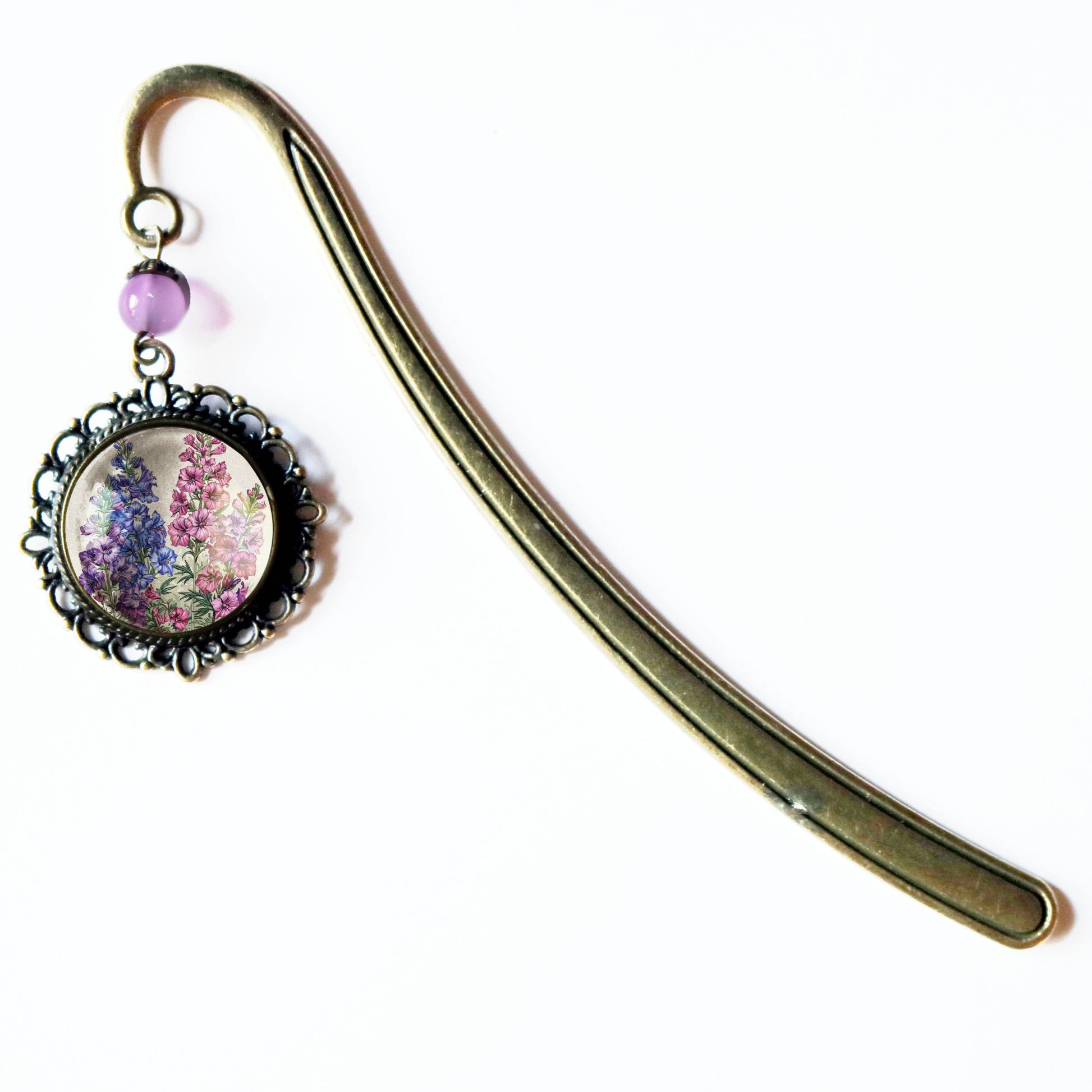 Larkspur Flower / Delphinium Bronze and Glass Bookmark