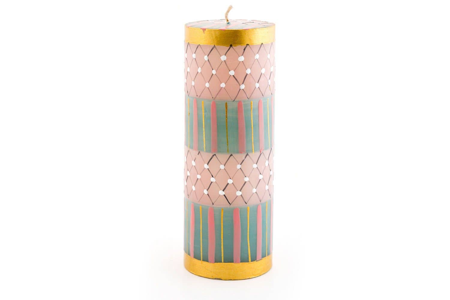 *Lovingly hand poured and hand painted in South Africa. *Crafted primarily by single mothers from the local rural community. *On average, the artisans support an extended family of 12-15 people. PRODUCT DESCRIPTION: *Highest quality natural paraffin wax with 100% cotton wick *Unscented, smokeless, and free from added toxins *Tapers packaged as a matched pair *Each candle is uniquely made. Your delivered candle will likely appear slightly different from the website photo, but consistent with the theme of the collection. CANDLE CARE: *First burn time: 1-hour for every inch diameter *Wicks should always be cut to ¼” prior to lighting *Avoid drafts – they cause dripping! *Ensure candles are extinguished prior to leaving the room