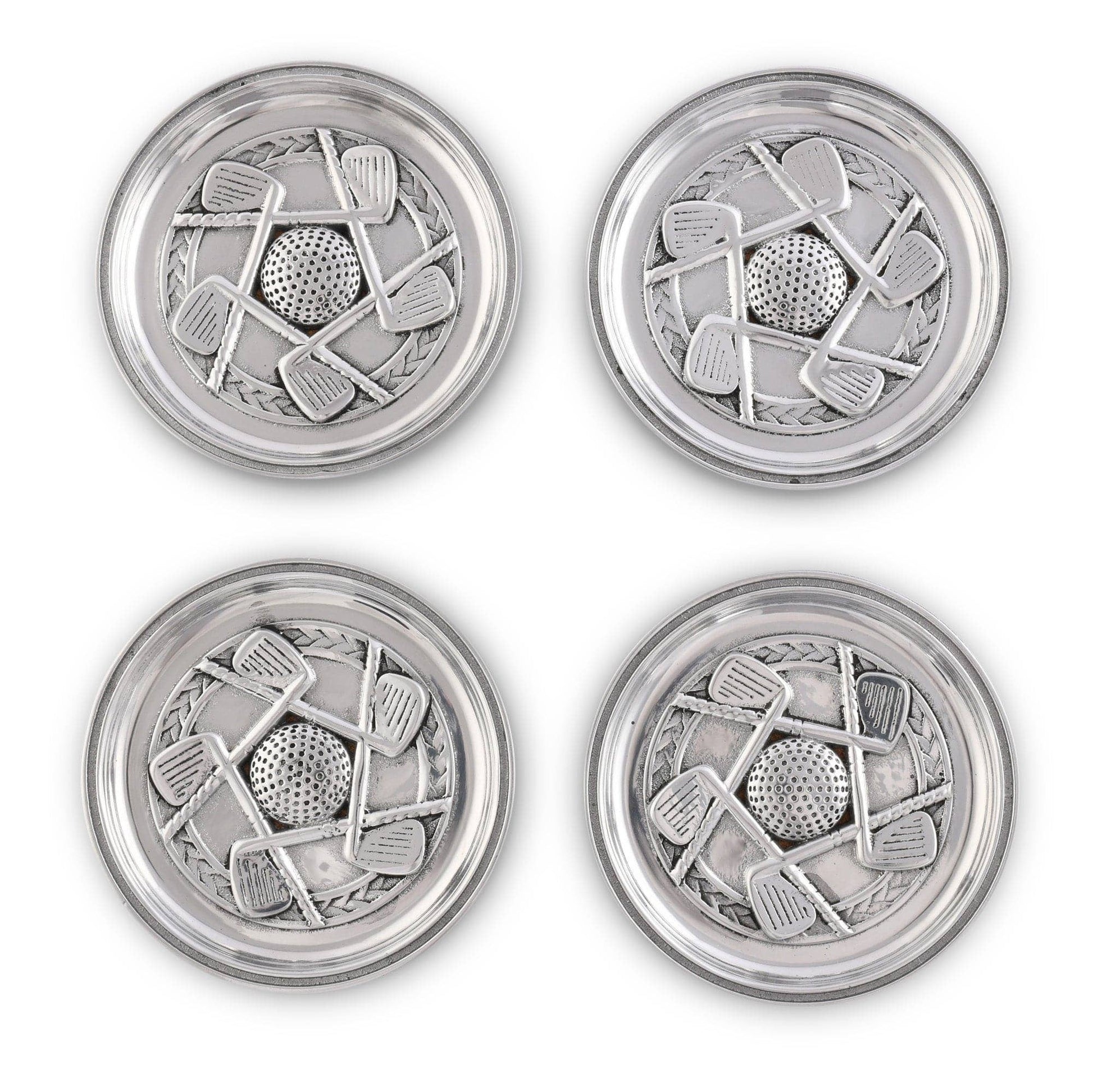 Introducing the Golf-Themed Coaster Set, a thoughtful and elegant addition to the collection of any golf aficionado. This set includes four beautifully crafted coasters, each one constructed from high-quality metal with a cork bottom to ensure stability and surface protection. The design is both functional and decorative, capturing the essence of golf in a subtle yet striking manner. These coasters are not just practical items to protect your surfaces from stains and spills; they are a nod to the classic sport of golf, making them an ideal gift for anyone who holds a deep appreciation for the game. Each coaster is meticulously designed with attention to detail, reflecting a blend of sophistication and sporty charm.