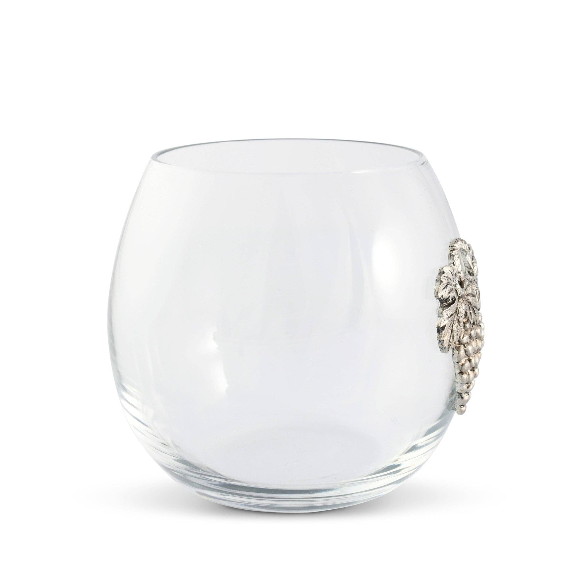 Bring sophistication to your entertainment space with this grape stemless wine glass. The grape bunch on the exterior of this wine glass boasts pewter construction for long-term beauty, while the rounded glass base ensures ample stability during use.