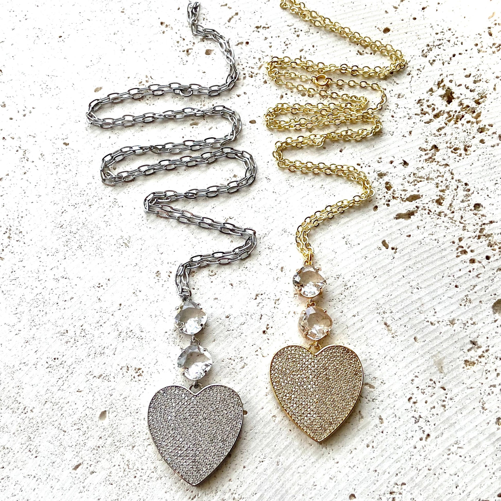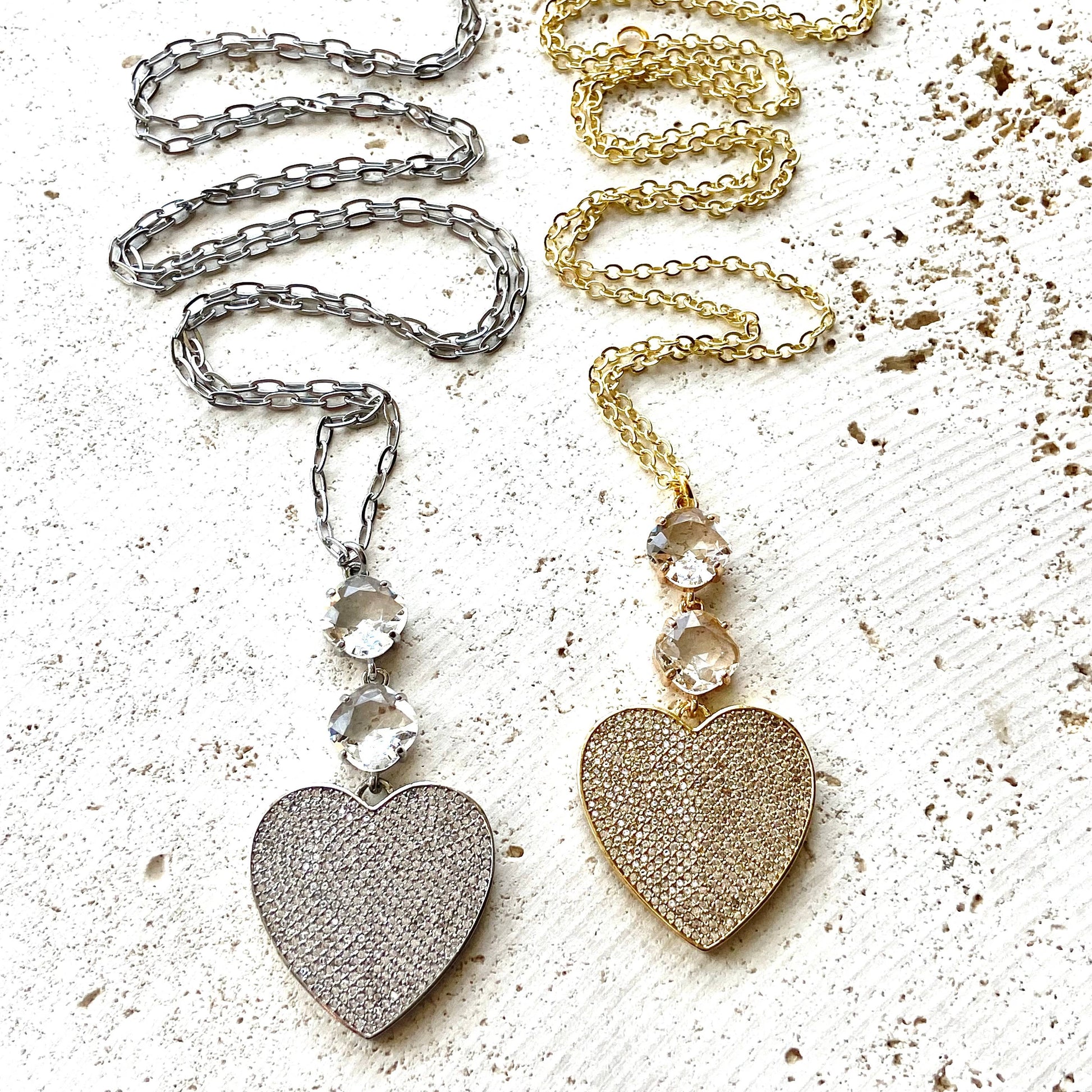 Micro pave crystal heart necklace. So sparkly!! 32” stainless steel chain non tarnishing.