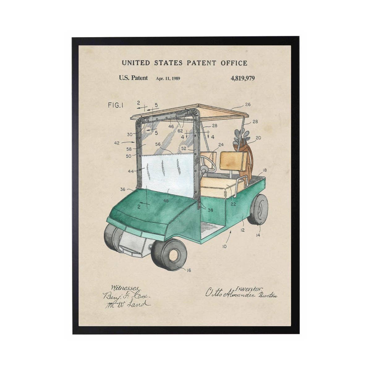 From the creative minds at Antique Curiosities Inc comes the Watercolor Golf Cart Patent Art Print. This charming piece blends the nostalgia of vintage patents with the vibrant appeal of watercolor, resulting in a unique artwork that is sure to captivate and inspire. Whether you're a golf enthusiast or a lover of unique art, this piece is a perfect addition to your home decor. It's more than just an art print, it's a conversation starter. Infuse your living space with the vintage charm and modern creativity that Antique Curiosities is renowned for.
