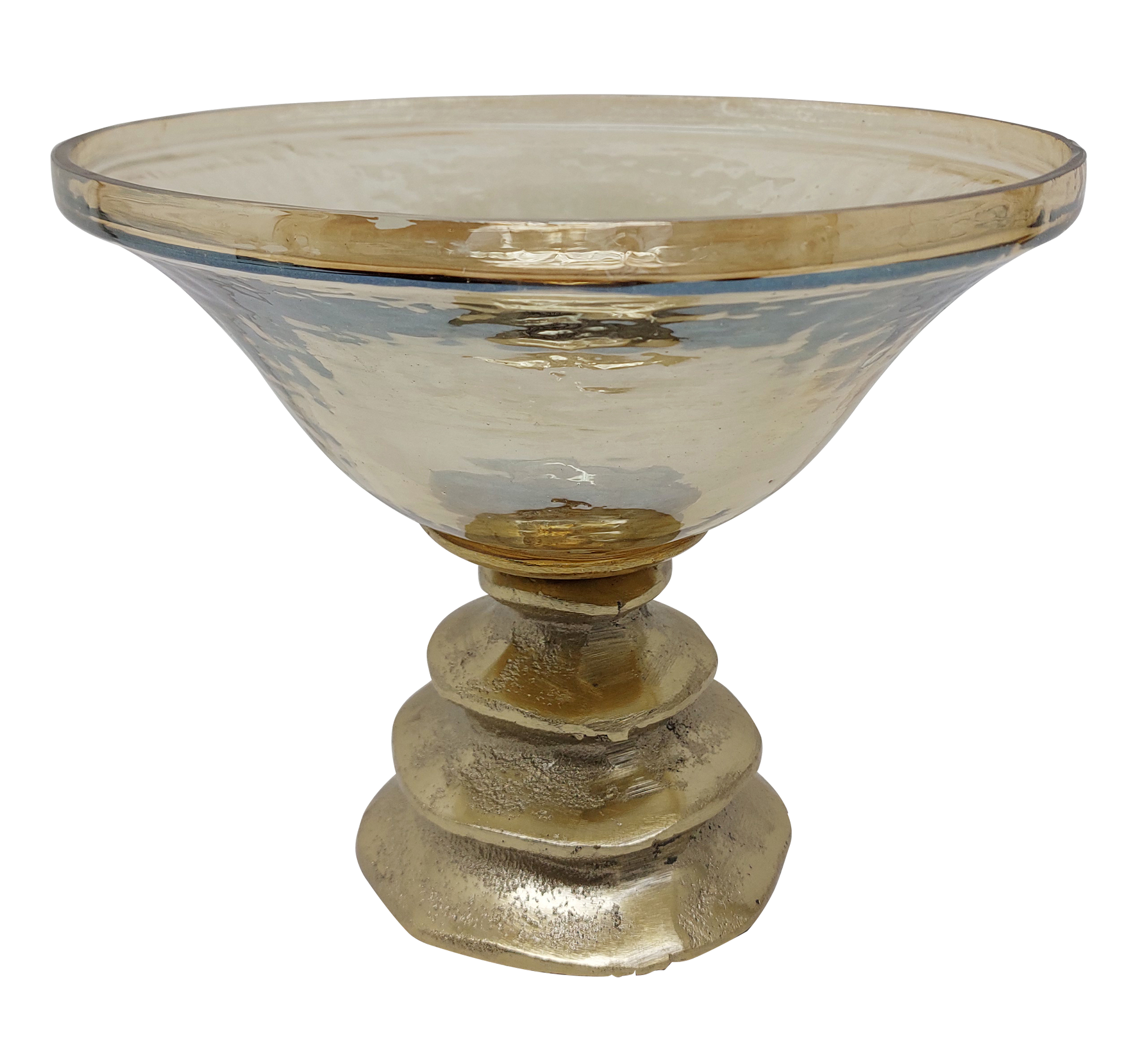 Glass Pedestal Bowl with Metallic Amber Gold Base