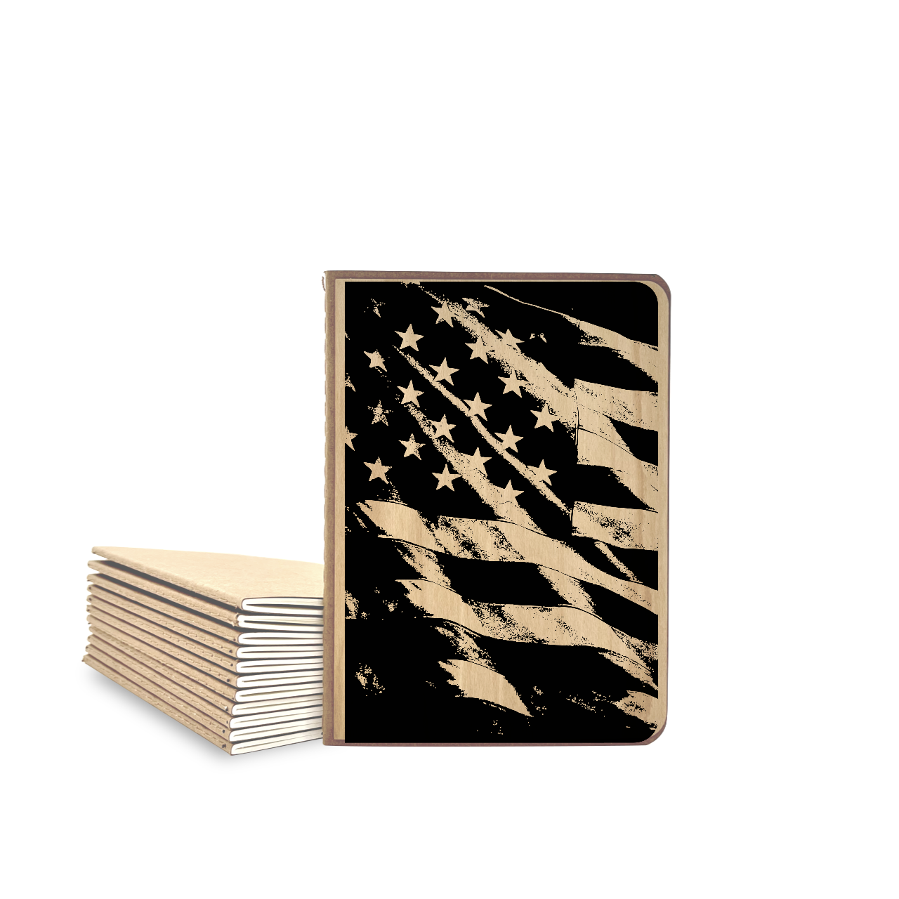 The US Flag Journal has a durable wood veneer cover with a classic design.